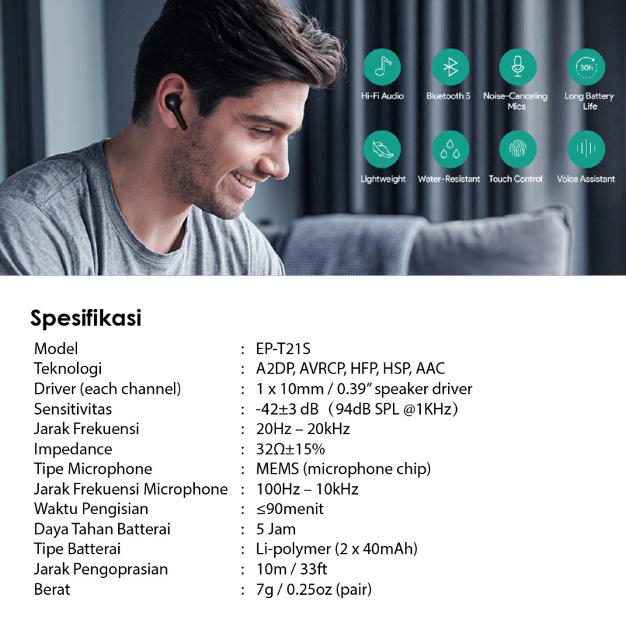 Kelebihan - Kelebihan membeli Headset /TWS Bluetooth Aukey EP-T21S Move Compact II 3D Surround Sound di Toko ini