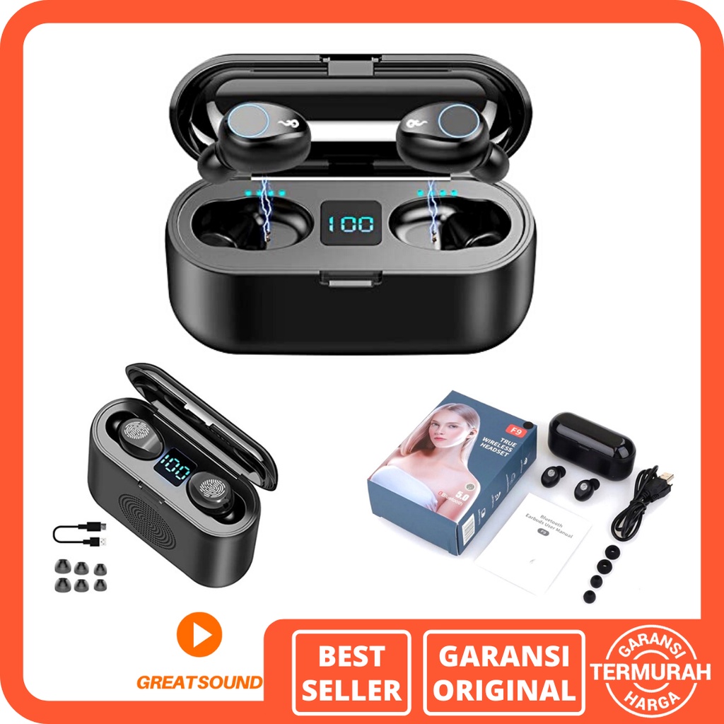 Kelebihan - Kelebihan membeli Headset TWS F9 Stereo TWS Bluetooth F9 Headset Bluetooth F9 Headset Powerbank Earphone Bluetooth F9 di Toko ini