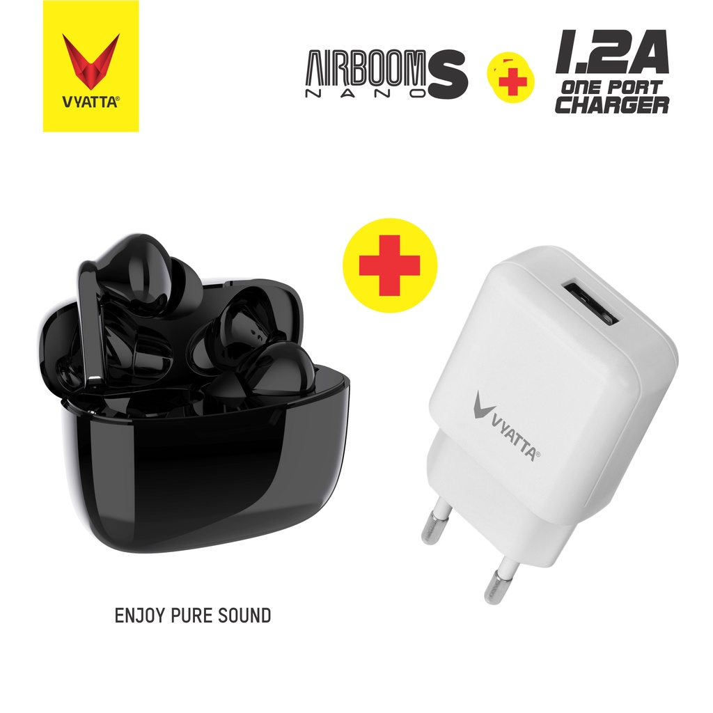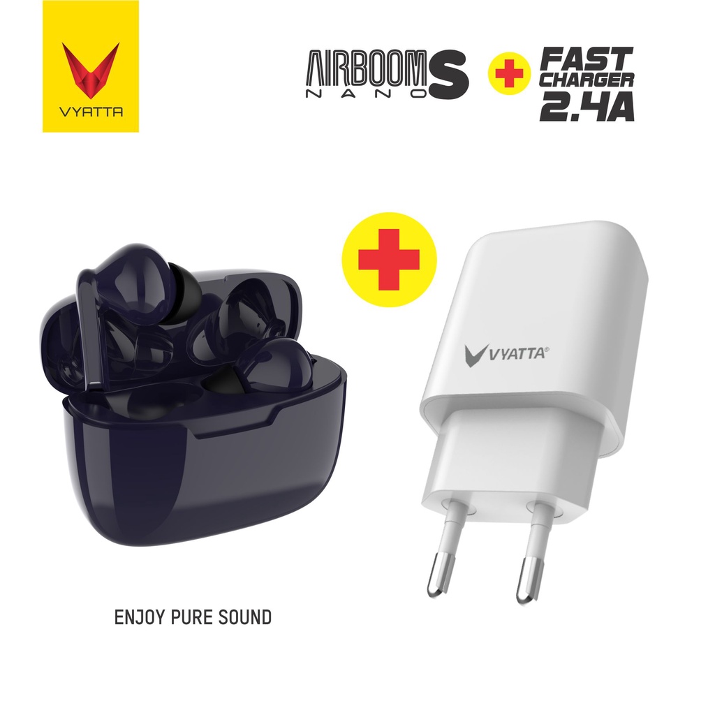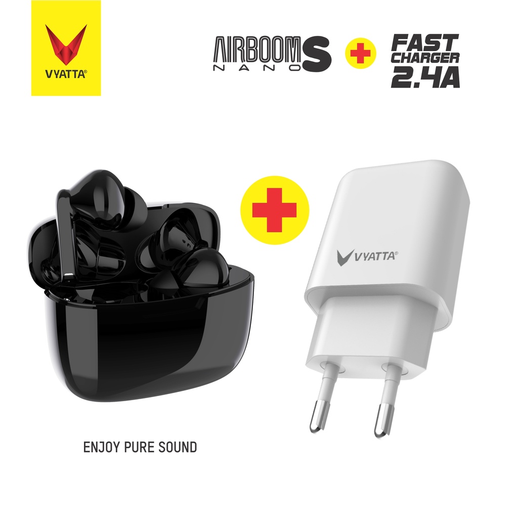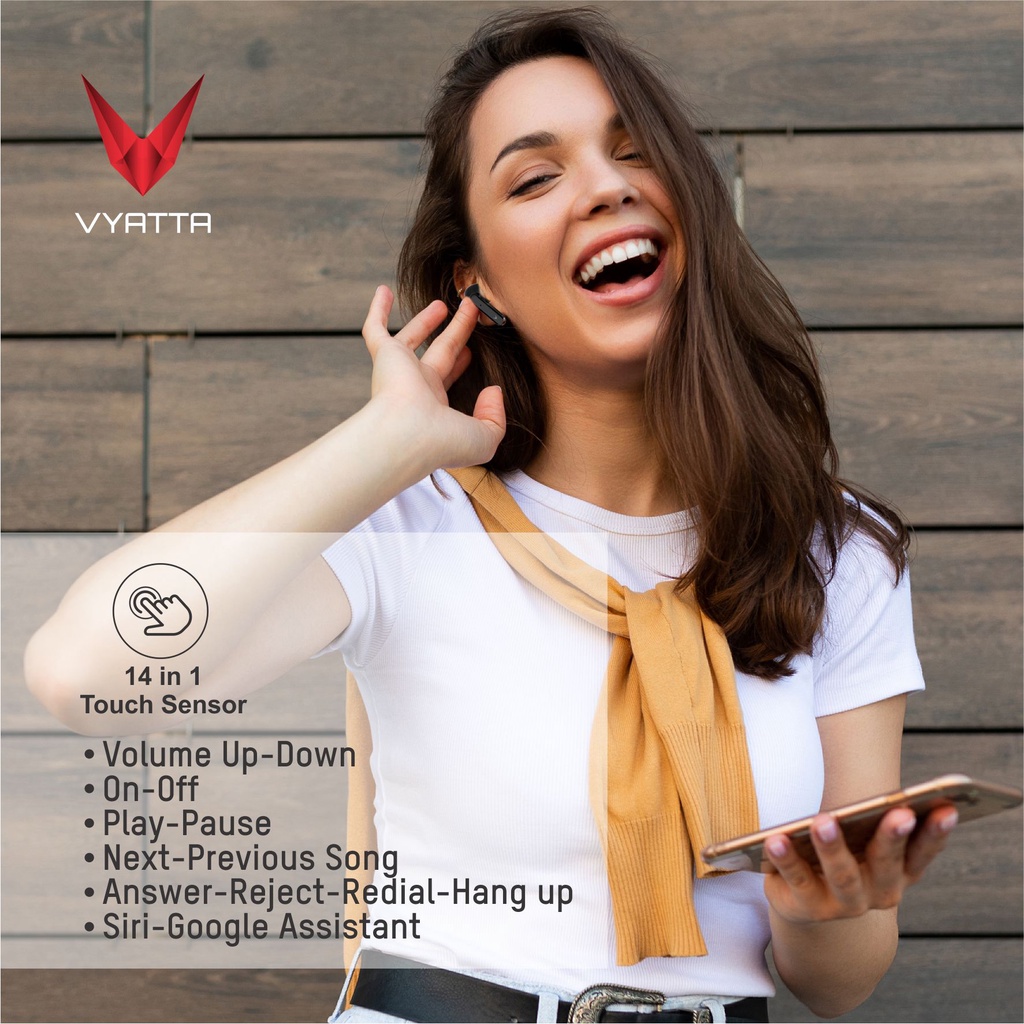 DISKON 25% VYATTA Airboom Nano S TWS Bluetooth Headset / Earphone Super Slim, Up to 10 hours,14in1 Smart Function