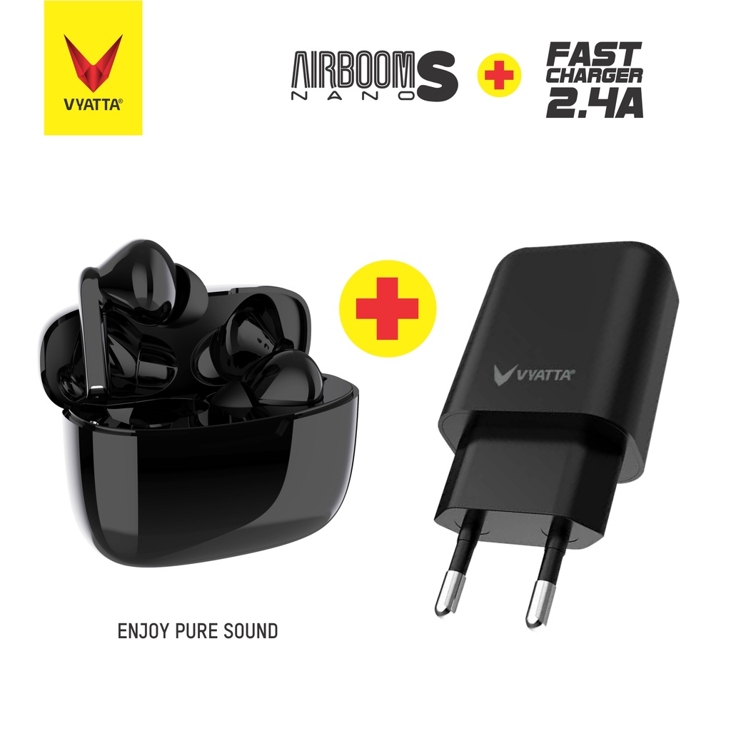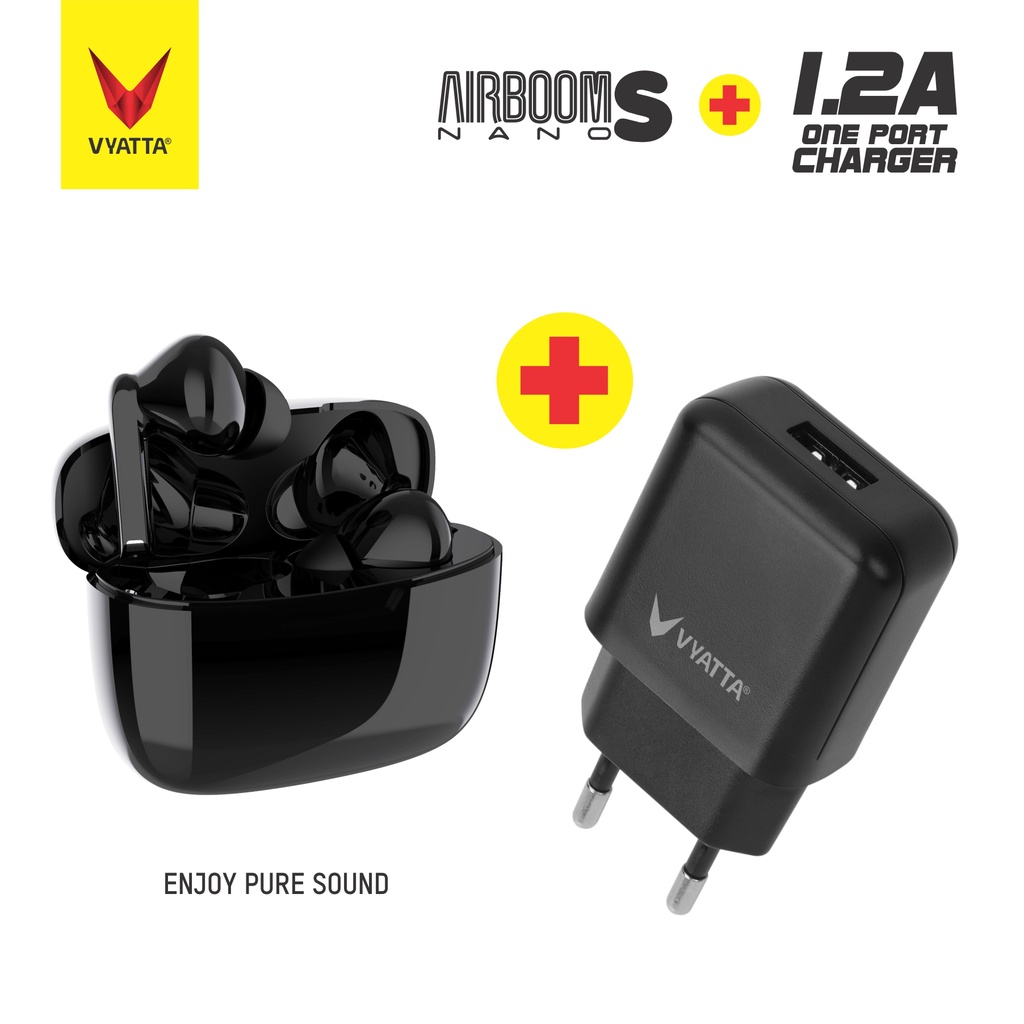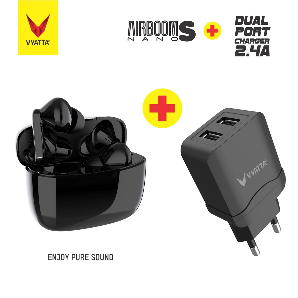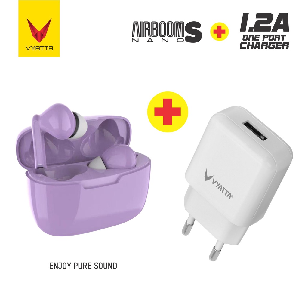 DISKON 25% VYATTA Airboom Nano S TWS Bluetooth Headset / Earphone Super Slim, Up to 10 hours,14in1 Smart Function