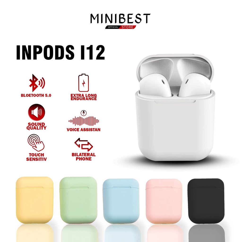 Kelebihan - Kelebihan membeli MINIBEST Headset Bluetooth inpods 12 TWS Macaron Earphone True Wireless Stereo HIFI Sentuh Earbud i12 MB-555 di Toko ini