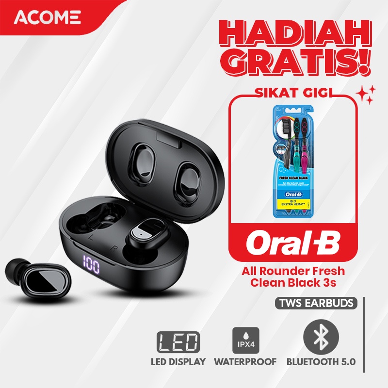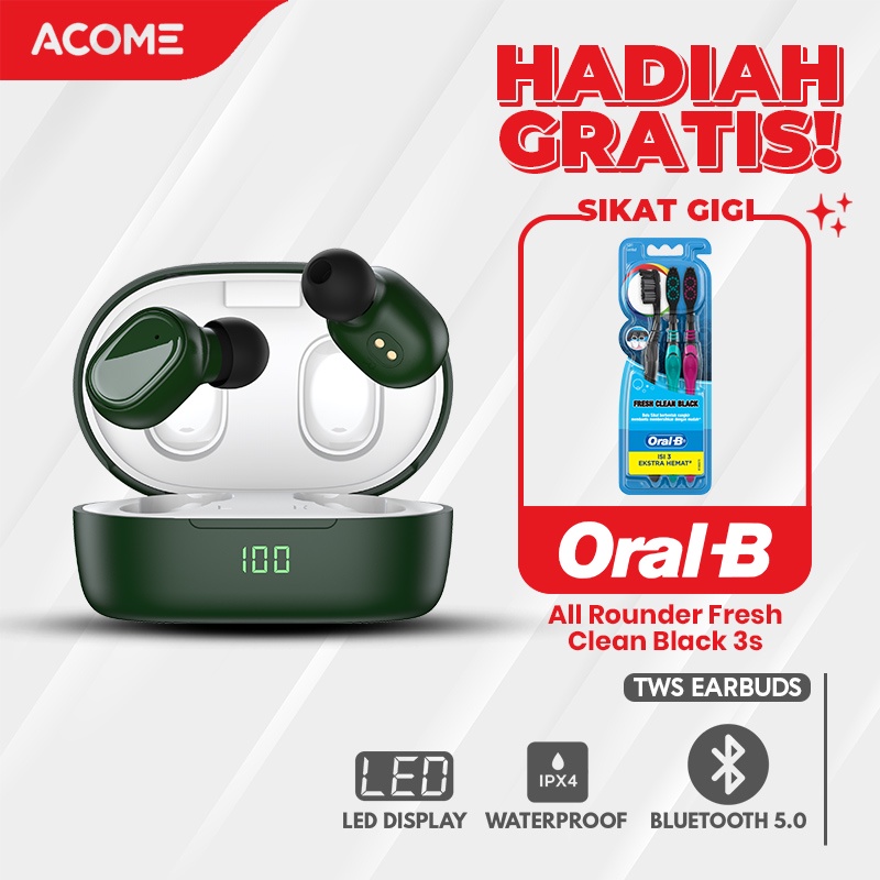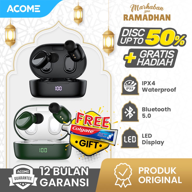 Alasan kenapa harus beli Acome Headset Earphone Bluetooth 5.0 TWS LED Garansi Resmi 1 Tahun Airdots T1 sekarang