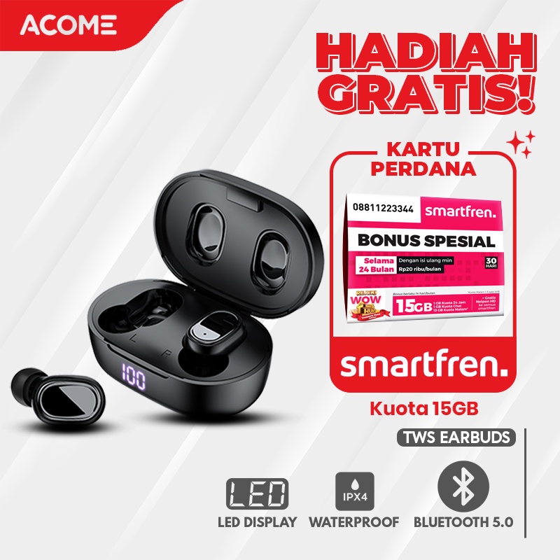 Harga Acome Headset Earphone Bluetooth 5.0 TWS LED Garansi Resmi 1 Tahun Airdots T1 saat ini masih murah hanya Rp. 149.000,00, kita tidak akan pernah tahu tentang Harga ini di masa depan, juga stok barang ini nanti atau besok hari, bisa saja harganya naik tinggi atau bisa juga stok sudah Habis.