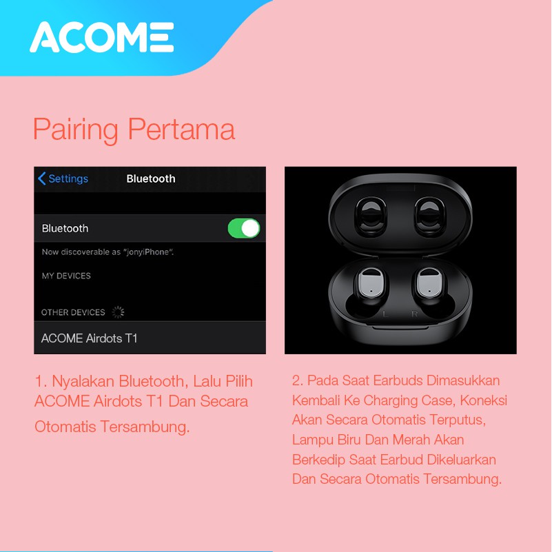 Kekurangan - Kekurangan membeli Acome Headset Earphone Bluetooth 5.0 TWS LED Garansi Resmi 1 Tahun Airdots T1 di Toko ini