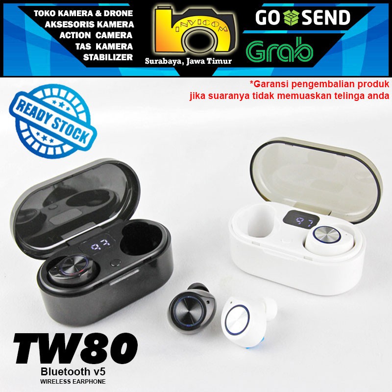DISKON 75% Earphone TWS Original TW80 Wireless Bluetooth Headset with LED Display for Android dan IOS