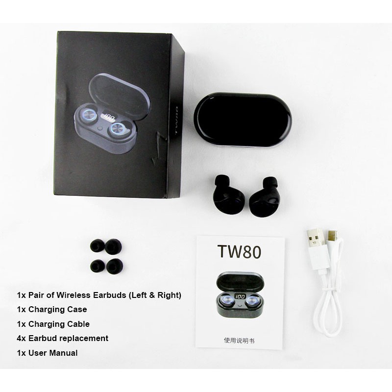 Kelebihan - Kelebihan membeli Earphone TWS Original TW80 Wireless Bluetooth Headset with LED Display for Android dan IOS di Toko ini