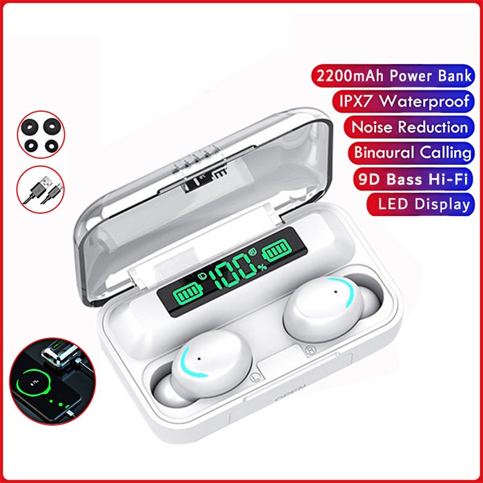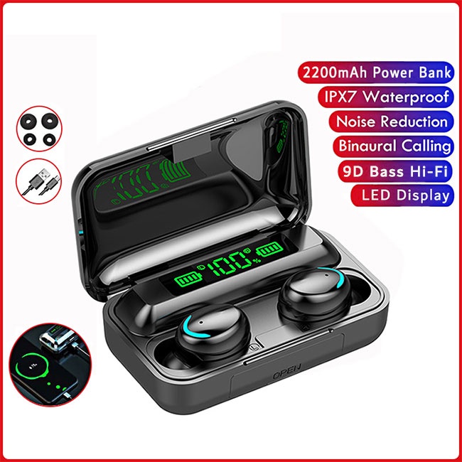 Kelebihan - Kelebihan membeli (COD) F9-5 Headset Bluetooth 2200mah Power Bank TWS with Mic 9D Bass Stereo Handset Water Proof Earbud 5.0 Wireless Earphone Henset di Toko ini