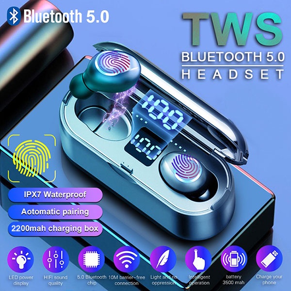 Kelebihan - Kelebihan membeli (COD) F9-8 Headset Bluetooth 2200mah Power Bank TWS with Mic 9D Bass Stereo Handset Water Proof Earbud 5.0 Wireless Earphone Henset di Toko ini