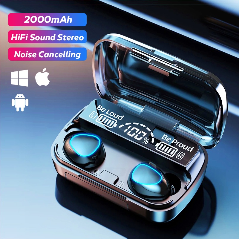 DISKON 85% M10 TWS Earbuds Bluetooth Earphone 2000mAH Touch Control IPX7 Headset Bloetooth Hengset earbuds