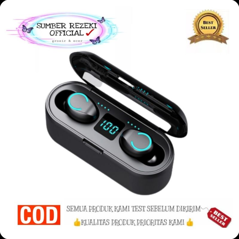 DISKON 85% SR - Headset TWS F9 V8.0 / Headset TWS F9-8 Tahan Air / TWS F9 Bluetooth Earphone In-ear Stereo wireless Headphone PowerBank