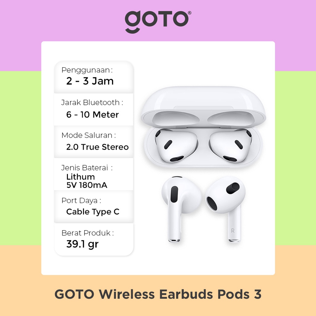 Kelebihan - Kelebihan membeli Goto Pods 3 Tws Earphone Headset Earbuds True Wireless Bluetooth di Toko ini