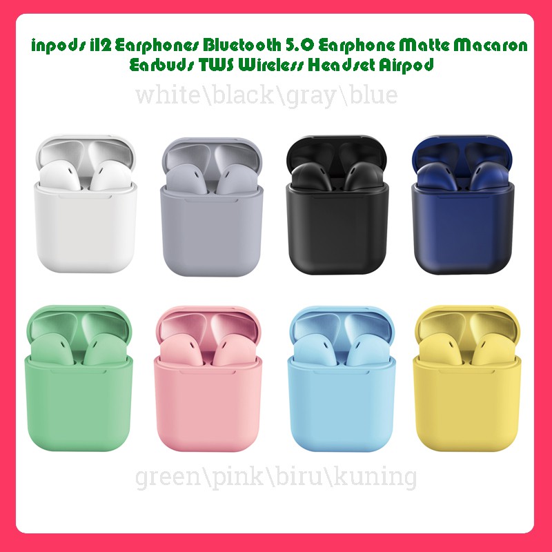 Kelebihan - Kelebihan membeli inpods i12 Earphones Bluetooth 5.0 Earphone Matte Macaron Earbuds TWS black white gray blue di Toko ini