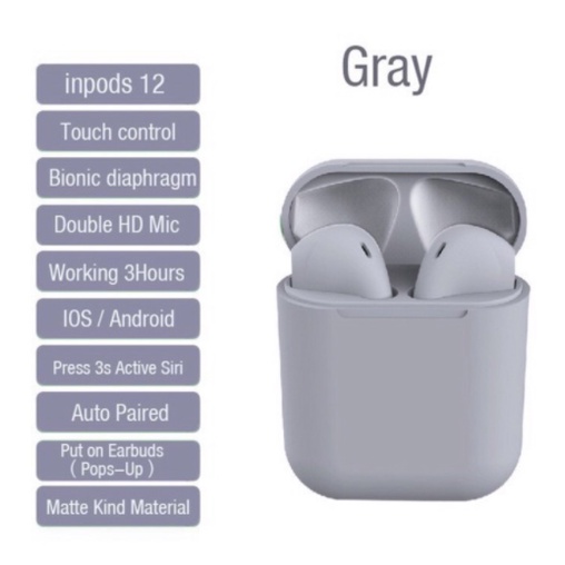 Harga inpods i12 Earphones Bluetooth 5.0 Earphone Matte Macaron Earbuds TWS black white gray blue saat ini masih murah hanya Rp. 35.000,00, kita tidak akan pernah tahu tentang Harga ini di masa depan, juga stok barang ini nanti atau besok hari, bisa saja harganya naik tinggi atau bisa juga stok sudah Habis.