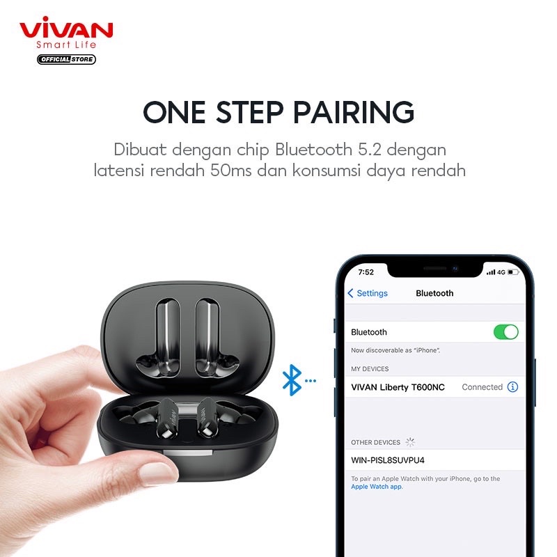 PROMO 22% VIVAN TWS T600NC Headset Bluetooth 5.2 Earphones Waterproof IPX7 48 Jam Play Time Garansi Original Resmi