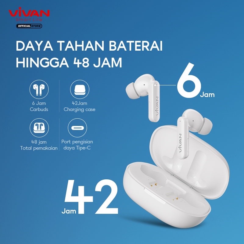 Kelebihan - Kelebihan membeli VIVAN TWS T600NC Headset Bluetooth 5.2 Earphones Waterproof IPX7 48 Jam Play Time Garansi Original Resmi di Toko ini