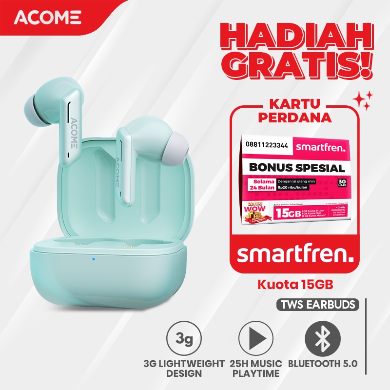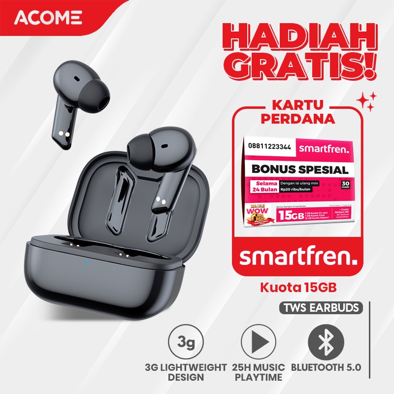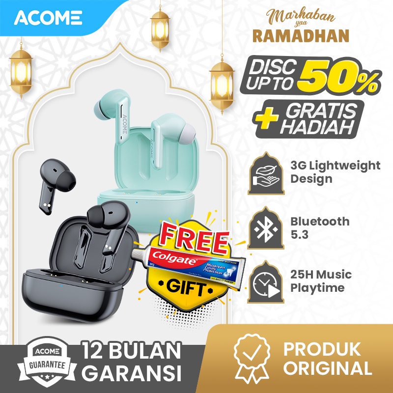 Kelebihan - Kelebihan membeli Acome True Wireless Earbuds Headset Bluetooth 5.3 TWS LED Garansi Resmi 1 Tahun Airdots T6 di Toko ini