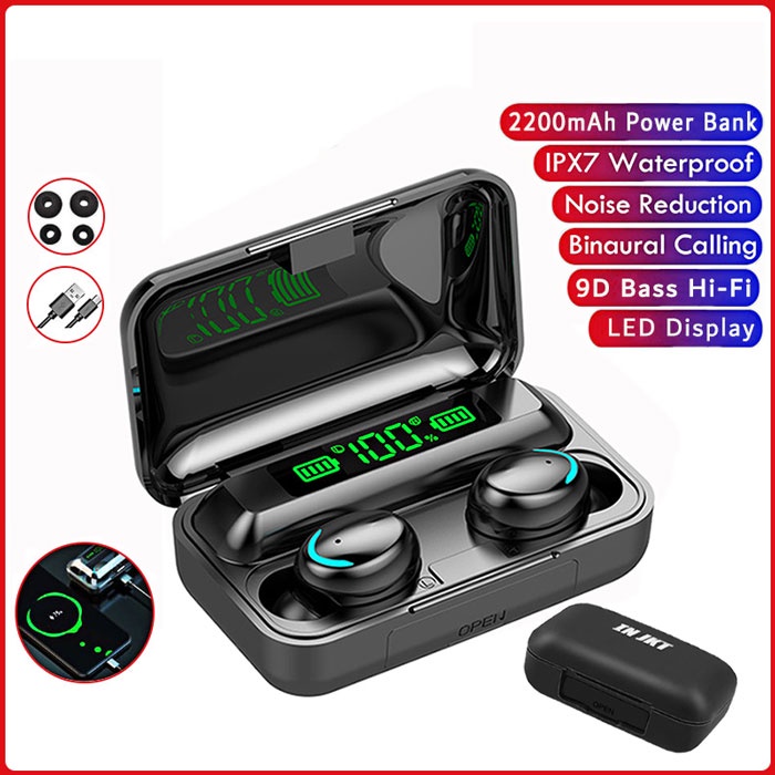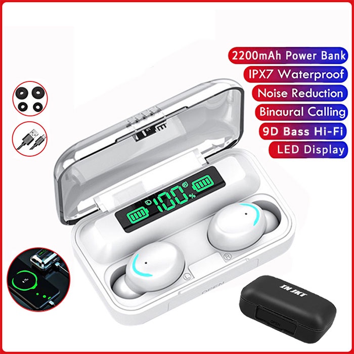 Alasan kenapa harus beli ⚡IN JKT F9 TWS 5.0 Bluetooth Headset Earphone with Mic 9D Bass HiFi Stereo Handset Dengan Mikrofon LED Display 2200mah Power Bank Wireless Earbuds Waterproof Headphone sekarang