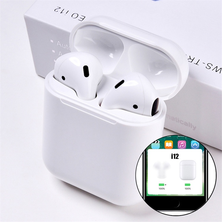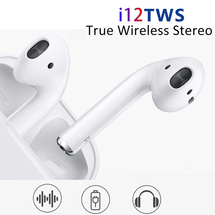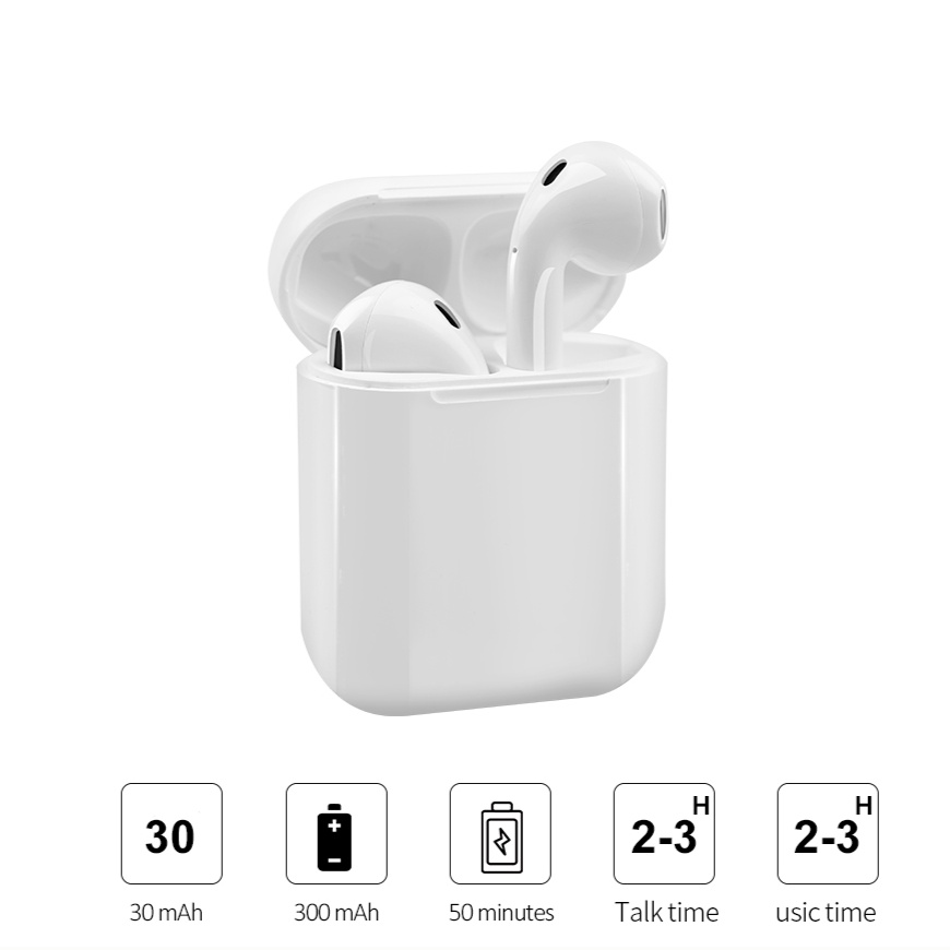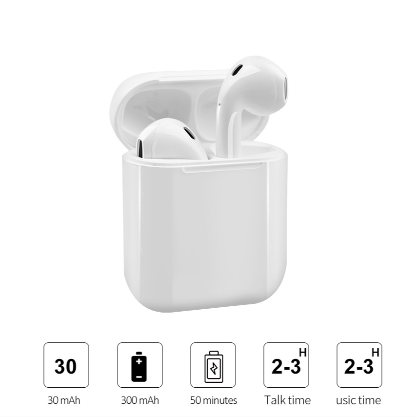 PROMO 45% MINIBEST Headset I12 TWS Bluetooth 5.0 Earphone Portable Warna Putih Dengan Kotak Charger MB-555