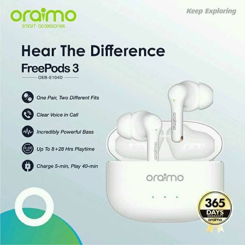 Kelebihan - Kelebihan membeli Oraimo Freepods 3 TWS Bluetooth Earphone v5.2 Wireless Handsfree Headset ORAIMO Black/White di Toko ini